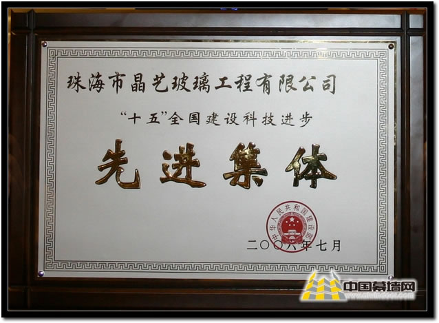 今天,晶艺公司荣获了建设部授予的“‘十五’全国建设科技进步先进集体”荣誉称号(广东省仅六名),的确值得庆贺。晶艺公司自成立以来,就一直重视技术创新和对新技术的大力推广,每位晶艺人都清楚认识到目前市场竞争剧烈,科学技术是企业存在的生命线,只有不断加强自主创新的力度,企业才有发展的可能。在“十五”期间,晶艺公司相继承建并优质高效地完成了一批技术含量高,施工难度大的