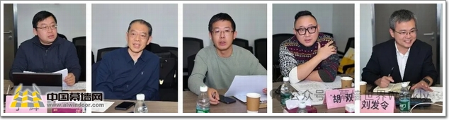 △ 评审会现场专家(左起:RFR阿法建筑设计咨询(上海)有限公司设计总监 于 辉、中国建材市场协会装配式装修分会会长 宋 兵、龙湖集团幕墙总监 郑 平、资深电视导演 胡 双、中建研科技股份有限公司工程咨询设计院幕墙院院长助理 刘发令)