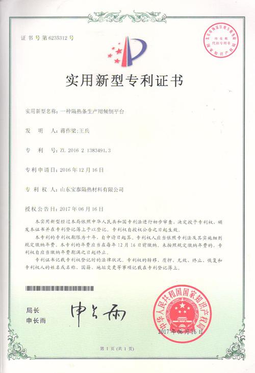 实用新型专利-一种隔热条生产用倾倒平台 |
