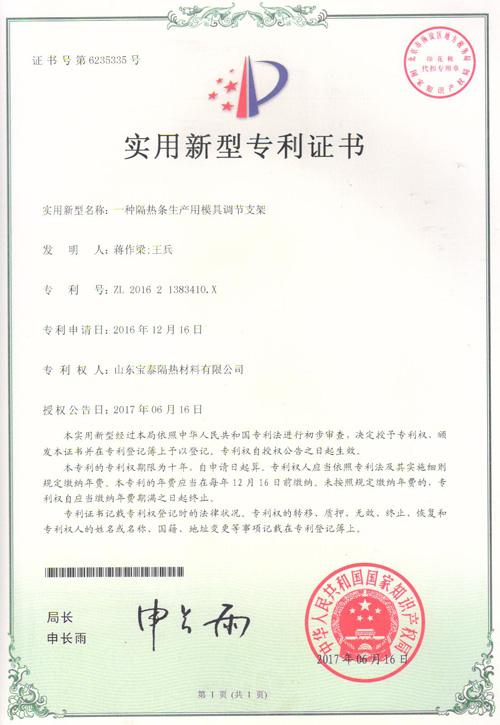 实用新型专利-一种隔热条生产用模具调节支架 |