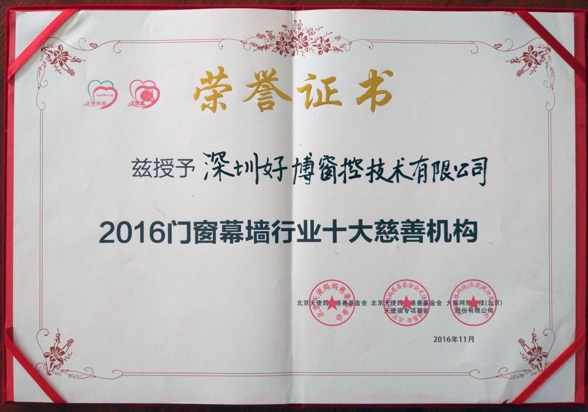 2016年度门窗幕墙行业十大慈善机构 |