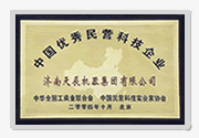 中国优秀民营科技企业证书