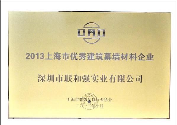 2013上海市优秀建筑幕墙材料企业证奖牌 |