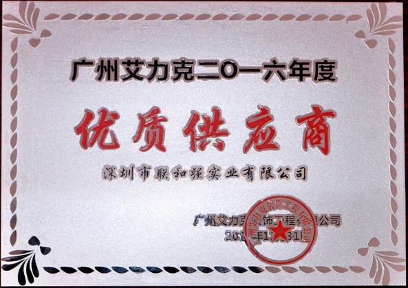广州艾力克2016年度优质供应商证书 |
