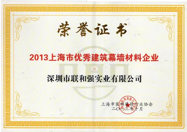2013上海市优秀建筑幕墙材料企业证书 |