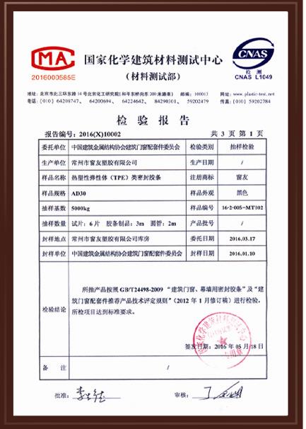 国家化学建筑材料测试中心检验报告-1 |
