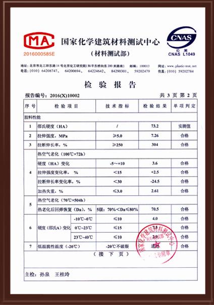 国家化学建筑材料测试中心检验报告-2 |