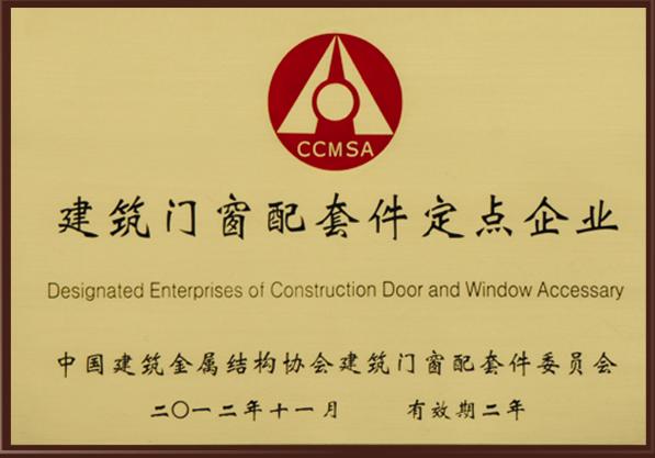 建筑门窗配套件定点生产企业奖牌 |
