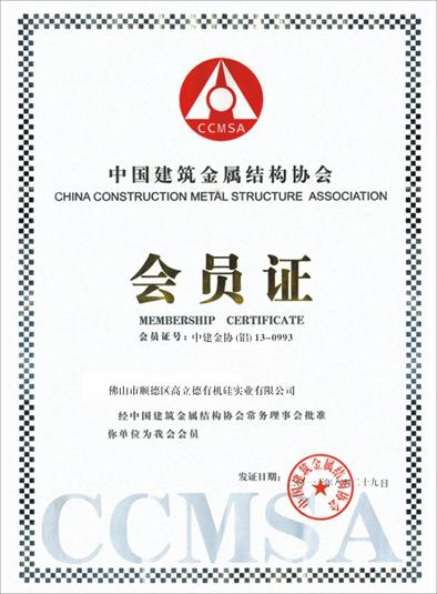 中国建筑金属结构协会会员证 |